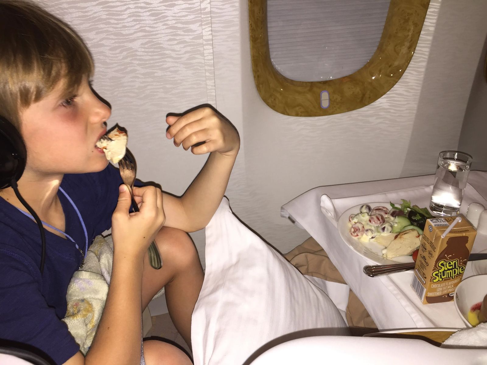 I always let the airline know ahead of time we will be traveling with young kids and pre-order any special meals my family will need. Meals in business and first class often require a sophisticated palate and are generally not kid-friendly. If you have a picky-eater, this can be a huge problem and I can guarantee fellow passengers won’t find a ‘hangry’ tantrum the least bit amusing. But as much as you try to prepare ahead of time, airlines will still once in a while forget the kids meals. It is always better to be prepared so I strongly recommend bringing snacks and foods your child is familiar with and enjoys eating.