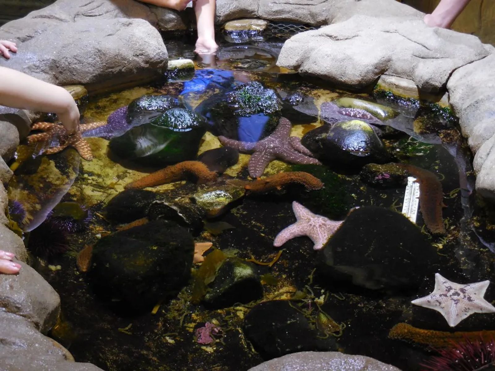 There is another interactive exhibit that looks like a tide-pool filled with starfish and sea urchins that you can touch. This definitely brings out my inner child as I love to get my hands wet alongside my children as we explore the wonders of a tide-pool together.