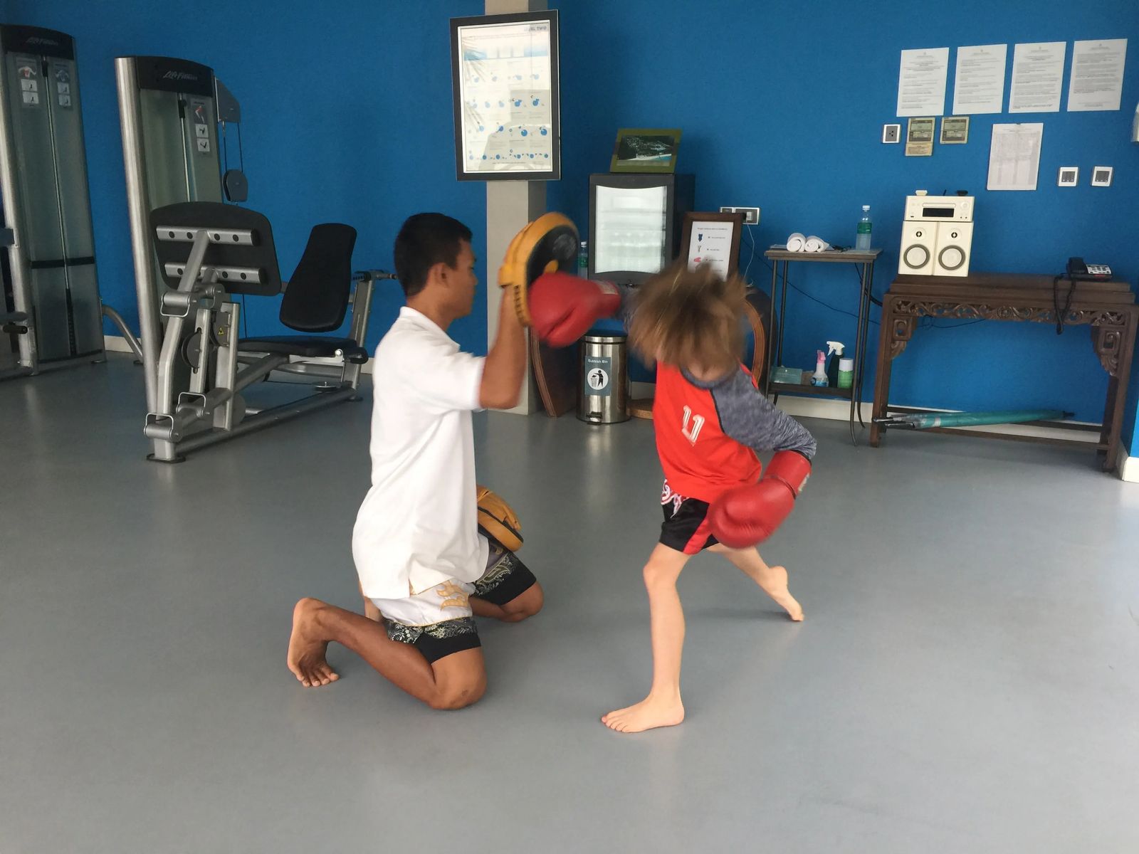 Isaac tried Thai boxing on a rainy day!