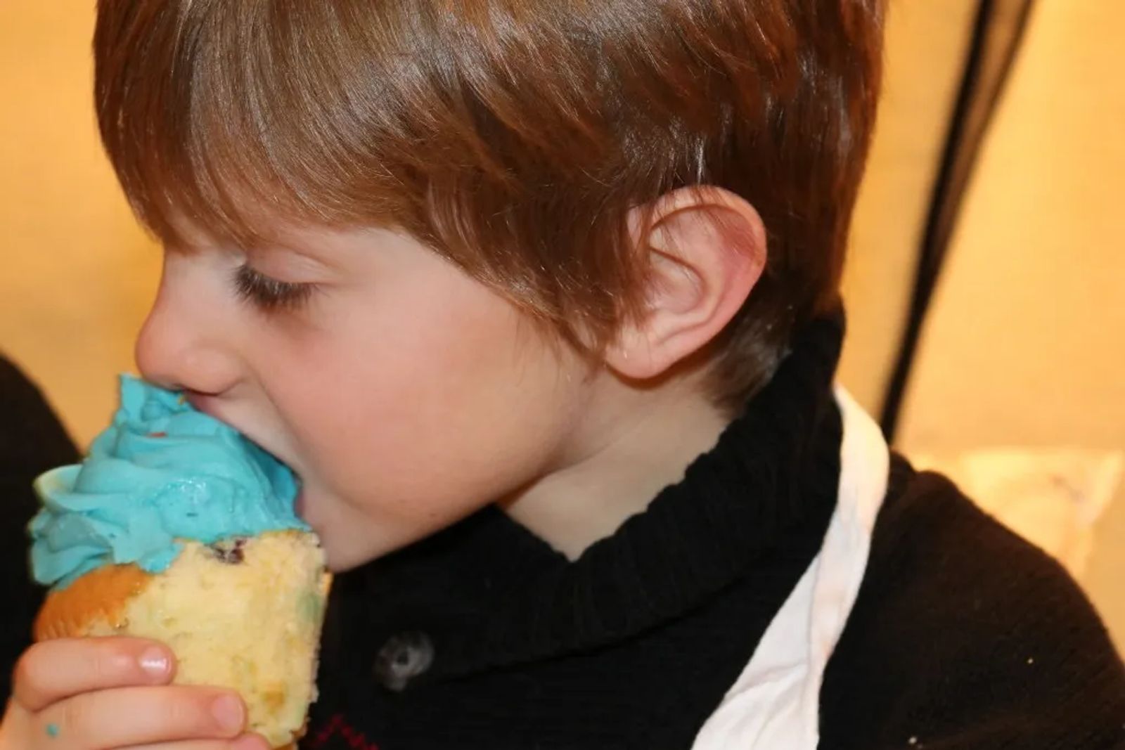 Finally the moment we had been waiting for: scones! Special Christmas spiced and classic sultana scones accompanied with orange liquor curd, strawberry jam and home-made Devonshire cream touched down on our table. My daughter fell in love with the orange liquor curd and essentially devoured it before any of us could sample it! Suddenly, when I thought our tea party had come to an end, our host appeared with two aprons and four larger than life cupcakes to be decorated! My kids’ eyes nearly popped out when they realized they were for them to decorate and of course eat! Luckily bedtime wasn’t happening anytime soon so I gave a nod of approval to commence decorating. I wasn’t to be left out of the gift-giving (as if I hadn’t had enough). A beautifully wrapped gift box was set down in front of me filled with plum pudding mouse, classic Christmas fruit cake, chocolate and orange yule logs and spiced apple pie.