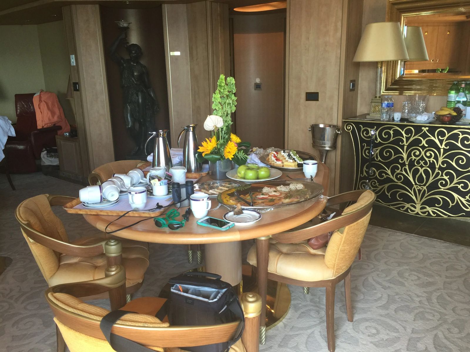 A big bonus to having the Pinnacle Suite are the amenities that come with it. First at check-in we had priority and were escorted all the way through customs to the ship by a lovely woman named Elinda. As we arrived to the boarding entrance, we were met by two women named Pollyanna and Laura who escorted us to our suite and they were our private concierge for the entire cruise. The escort service is strictly for the Pinnacle Suite guests but since my father and his fiancée were also in a suite and part of our ‘party’, they kindly included them in the escort process.