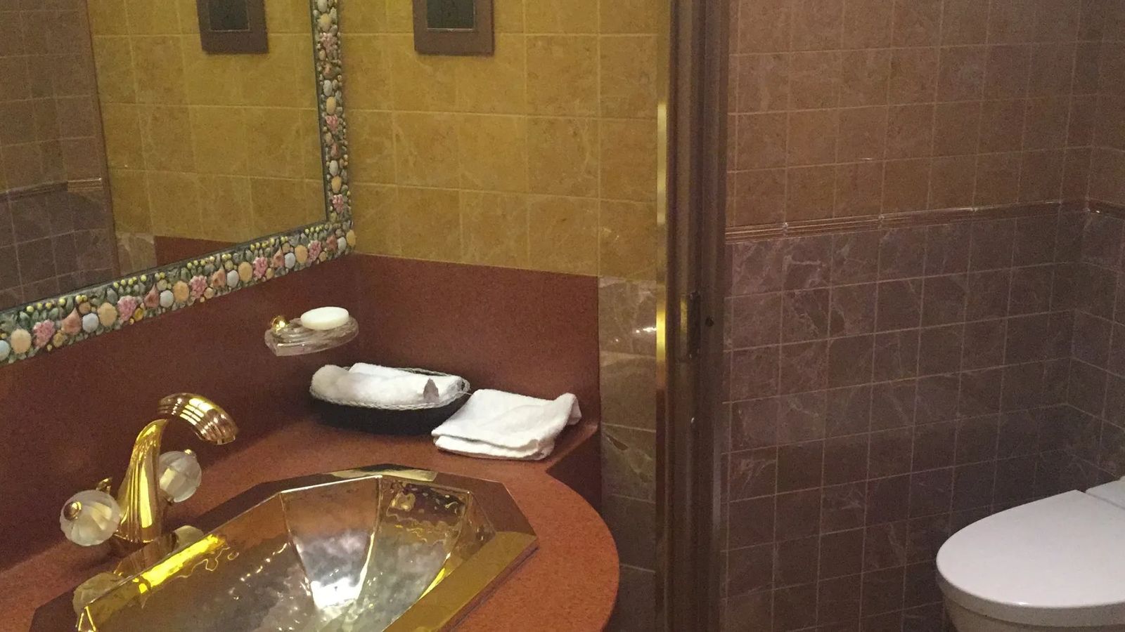 To the left of the entry way was a guest bathroom. It had a wash basin and a separate toilet area both of which were decorated in blingy gold materials. The lock to the bathroom door was quite sticky and unfortunately one morning my son was locked in the bathroom for about 1/2 hour. To keep him calm, his sister slid love notes under the door while an engineer was finally able to get him out but it was quite scary for him!