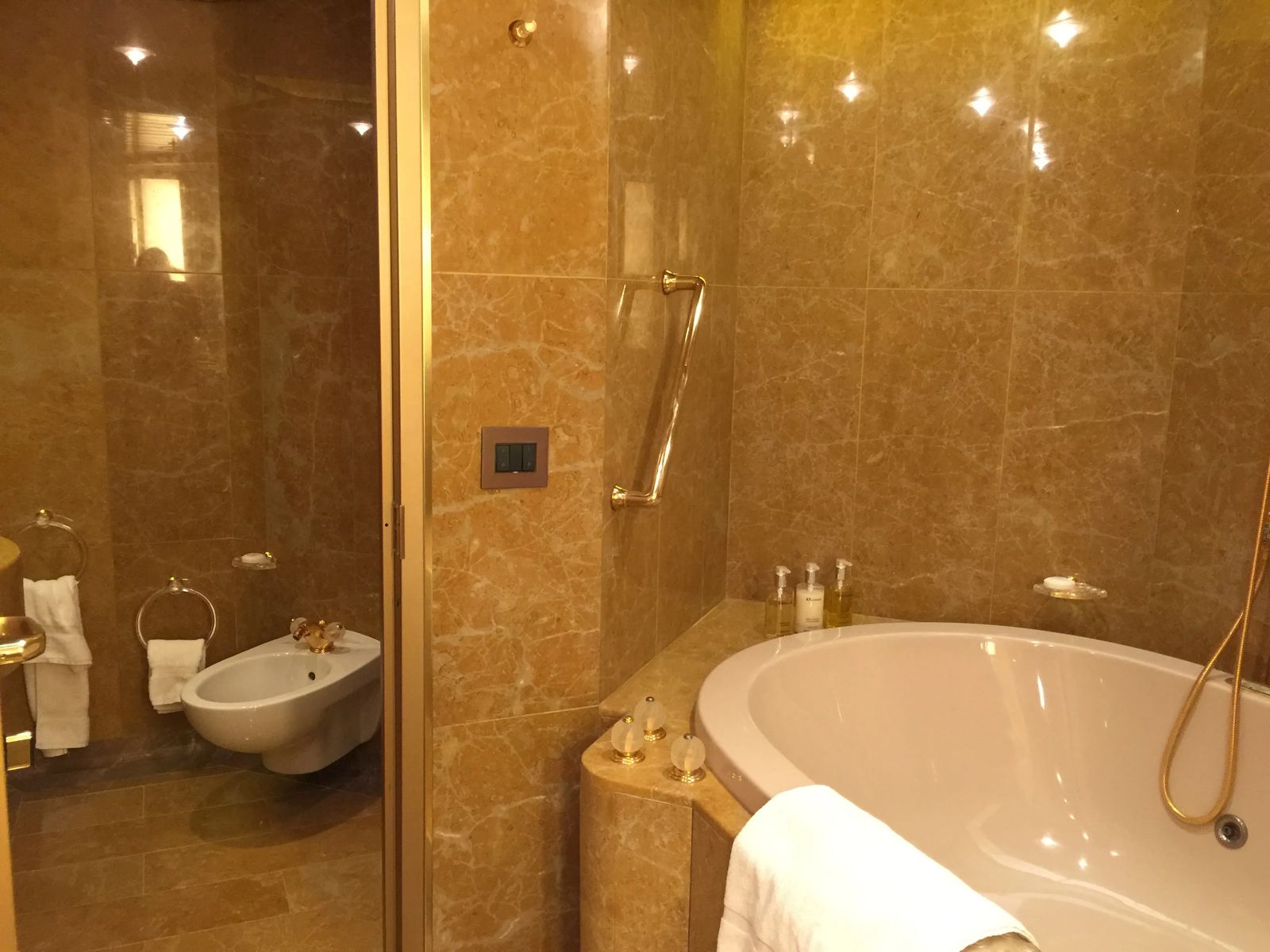 The master bathroom is really over the top incredible. Located off the master bedroom, it featured a separate toilet area and sink with its own door. A huge Jacuzzi tub was a hit with the kids that not only had mood lighting but a large wall water fountain! A 2-sink vanity offered a lot of bling with gold plated sinks and accessories and both mirrors were actually medicine cabinets. This suite offered more storage than my house in Montana! A stand-alone steam shower had jets to reach every part of your body, to include the bottom of your feet (although we could never get that to work and honestly didn’t feel it was important enough to ask). To the right of the master bath was a huge changing area with 4 separate closets and the safe was located here as well. The changing area also had a door in case someone needed more privacy.